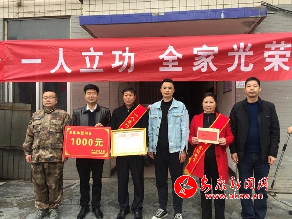 一行人先后來(lái)到城關(guān)鎮(zhèn)現(xiàn)役軍人劉家軍家中,為其送去“三等功”喜報(bào)和慰問金,對(duì)現(xiàn)役軍人劉家軍取得的榮譽(yù)表示祝賀,并詳細(xì)詢問了劉家軍家屬的生活狀況,感謝他們?yōu)椴筷?duì)、為祖國(guó)培養(yǎng)了優(yōu)秀的軍事人才,并鼓勵(lì)他們要一如既往地支持軍人在部隊(duì)安心服役,支持國(guó)防建設(shè),爭(zhēng)取再創(chuàng)佳績(jī)。劉家軍的父親接過(guò)這份承載著榮譽(yù)的喜報(bào),深情地表示會(huì)繼續(xù)做好軍人的堅(jiān)強(qiáng)后盾,鼓勵(lì)孩子在部隊(duì)安心服役、建功軍營(yíng)。