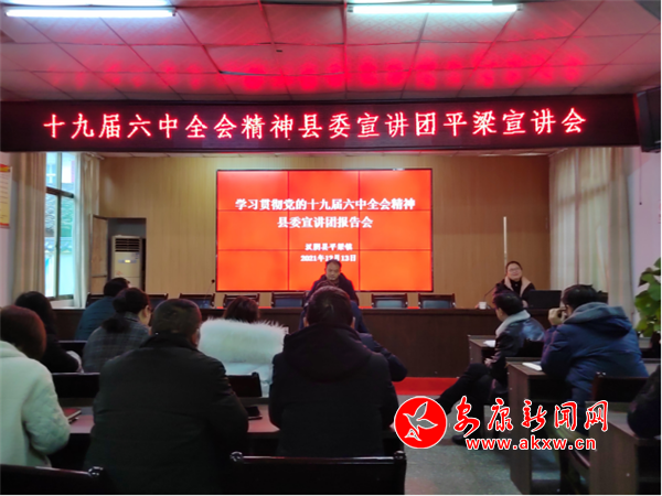 本網(wǎng)訊(通訊員 陳小磊)為了讓黨的十九屆六中全會精神往深里走、往實里走、往基層干部心里走,漢陰縣委宣講團(tuán)12月13日深入平梁鎮(zhèn)宣講黨的十九屆六中全會精神。