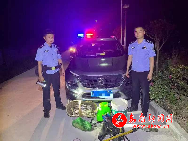 7月31日,漢陰公安雙乳派出所接到護(hù)河信息員反映夜間有人在轄區(qū)三同村段月河內(nèi)電魚的線索后,該所組織警力進(jìn)行核查布控,23時許,民警發(fā)現(xiàn)有兩名嫌疑男子正在河道內(nèi)使用電瓶裝置以電魚方式進(jìn)行非法捕撈。兩名嫌疑人發(fā)現(xiàn)民警后,立即丟棄電瓶裝置、漁獲物等作案工具逃離,經(jīng)過民警細(xì)致排查,現(xiàn)場查扣嫌疑車輛一臺,鎖定了犯罪嫌疑人。