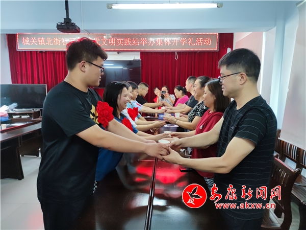 8月15日,漢陰北街社區(qū)舉辦集體升學禮,引導群眾做新民風建設的踐行者,帶頭拒絕“升學宴”“謝師宴”。(通訊員 姚鑫)