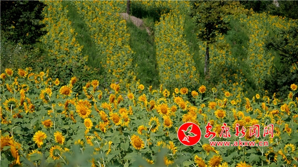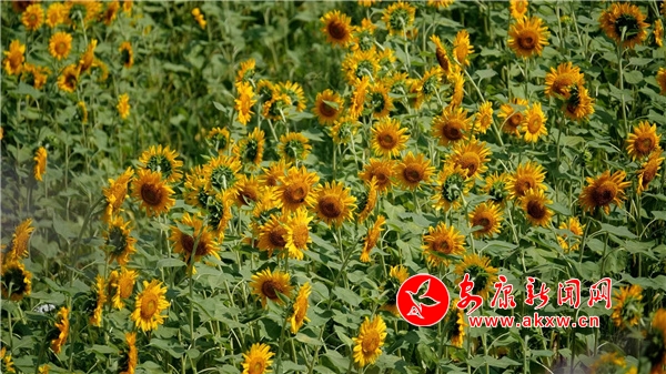 初秋時節,鳳凰山南麓有片百余畝的向日葵競相綻放,成為鳳堰古梯田景區里一道嶄新的風景線。來到鳳堰古梯田景區的老君關觀景臺,放眼望去,山間坡地里的向日葵向陽盛開,在青山和稻田的映襯下,顯得格外鮮艷奪目,朵朵葵花隨著微風漾起金色的花浪,好像一幅色彩斑斕的田園風光畫卷。