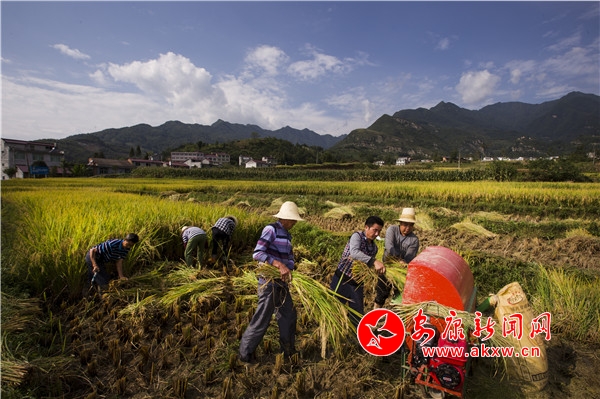 圖說|漢陰縣漩渦 千畝水稻開鐮收割