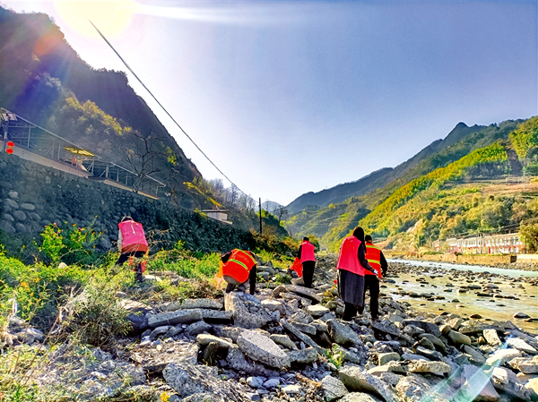 孟石嶺鎮桃園村女子護河隊開展志愿服務