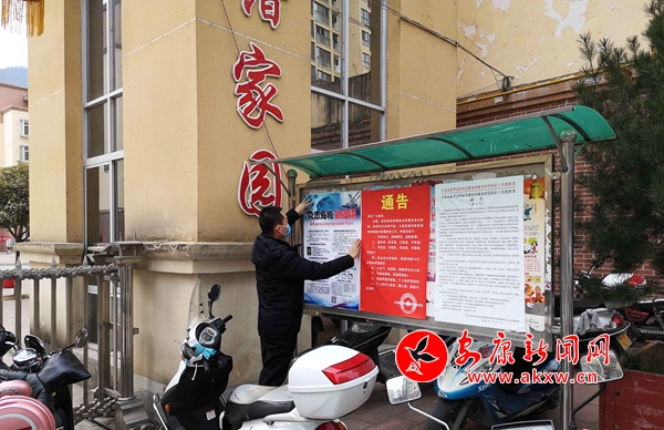 在入戶調(diào)查時,對群眾強調(diào)不要隨意出門走動,同時在小區(qū)出入口、十字路口粘貼疫情通告及冠狀病毒感染肺炎健康科普知識海報,并對小區(qū)沿河公園進行封閉,避免人員流動。配合社區(qū)工作人員在小區(qū)出入口設(shè)置走親訪友勸返點,引導(dǎo)社區(qū)群眾在防控期間自覺做到少出門、不扎推、不聚會、外出佩戴口罩,增強自我防病能力和衛(wèi)生健康意識,并對公共區(qū)域進行消毒。