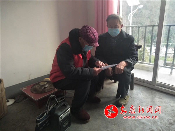用實(shí)際行動(dòng)感黨恩,李德國(guó)從大年初三起加入抗疫隊(duì)伍,和干部們一起沖鋒在疫情防控第一線。在宣傳走訪期間,李德國(guó)帶頭示范,主動(dòng)帶上口罩,每天在村上巡邏一圈,拿上宣傳單頁(yè)上門(mén)發(fā)放。