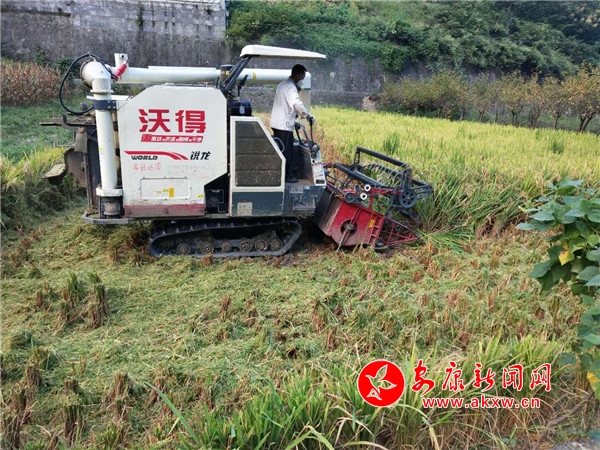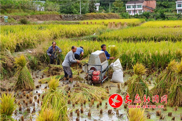 近日,石泉城關鎮4500畝水稻陸續進入收割期,農戶門搶抓晴好天氣,進行水稻收割、搬運、貯藏,雷興村、絲銀壩村、黃荊壩社區等村(社區)也首次采用機器代替手動收割,確保確保秋糧顆粒歸倉。(董長松/攝)rdf安康新聞網