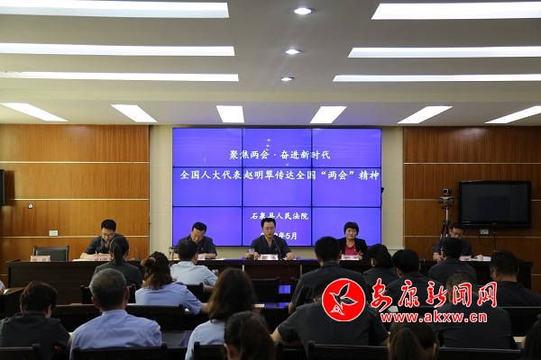 本網訊(通訊員 趙維鋒)5月31日下午,石泉縣人民法院舉行“聚焦兩會•奮進新時代”主題黨日活動,邀請全國人大代表、石泉縣郵政分公司鄉村郵遞員趙明翠講授……