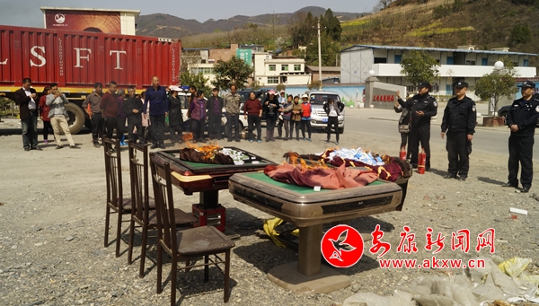 3月25日,呂河派出所開展嚴打賭博宣傳暨賭具集中銷毀活動,讓廣大群眾充分認識到賭博之害。同時,呂河派出所還將傳統宣傳模式與新型網絡宣傳相結合,通過在轄區主要路段和人口密集處張貼禁賭通告,利用微信公眾平臺向群眾推送消息等方式開展禁賭宣傳。