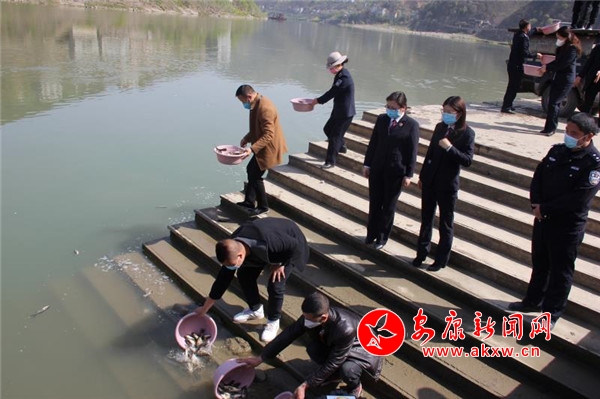 本網訊(通訊員 薛進濤)3月19日,旬陽縣在漢江碼頭舉行涉魚案件生態修復增殖放流暨2020年禁漁宣傳月啟動儀式活動,安康鐵路運輸檢察院、市農業執法支隊、市漁業生產工作站、旬陽縣農業農村局、旬陽縣公安局等單位干部職工共40余人參加活動。