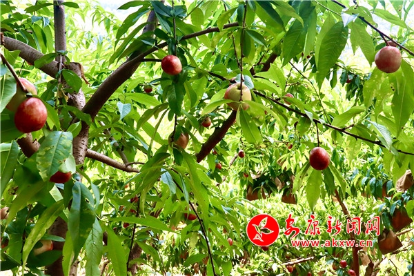 “我們家2016年栽種的1畝金山蜜梨,預計今年產量能有兩千斤,能賺一萬多元。還有4畝桃子,七八個品種呢,個個都好吃。”甘溪社區三組顯神廟附近的村民熊世忠介紹到。