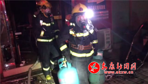 救援人員很快發現操作間內外有多個液化氣罐,救援人員迅速疏散圍觀群眾,劃定安全警戒區域,同時組織人員在水槍掩護下快速轉移液化氣罐,共疏散出大小液化氣罐14個,并進行降溫冷卻。此時,救援第二力量高噴車到達現場,明火被完全撲滅。