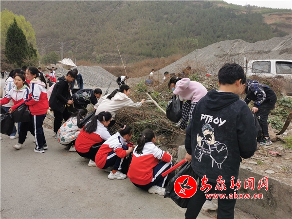 段家河鎮以栽植千畝櫻桃而聞名,每逢三月,櫻桃花盛開時節,吸引大批游客前往觀光旅游。當天,同學們手持垃圾袋,在老師的帶領下分工明確、行動有序地沿路撿拾垃圾,重點清理飲料瓶、煙頭、食品包裝袋等垃圾。大家干勁十足,充分發揚不怕臟、不怕累的奉獻精神。
