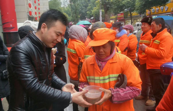 天冷降溫,室外寒冷,環衛工人更是辛苦。旬陽南方百貨攜手旬陽南方商務酒店,在這個寒冷的日子,在這個中國傳統的臘八節,為辛勞的城市衛士送上一碗熱熱的臘八粥……